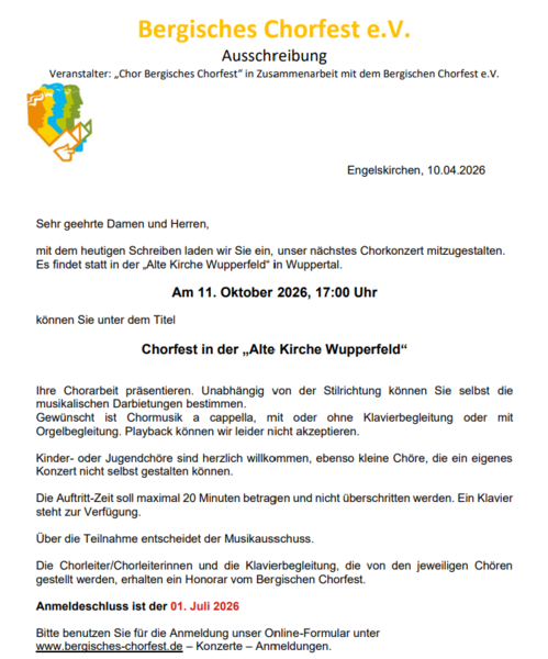 Bei Interesse für das "offene" Leistungssingen - bitte melden!